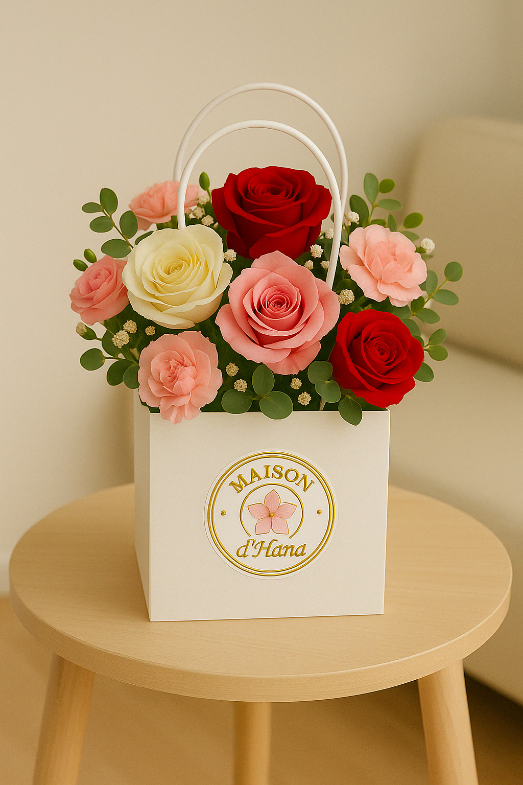 Nous croyons en la beauté du geste, dans les détails qui marquent et les attentions qui comptent. C’est pourquoi chaque bouquet Maison d’Hana est une œuvre florale unique, livrée dans un packaging haut de gamme pensé comme un écrin.
